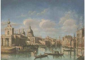 A Gondolier On The Grand Canal, Santa Maria Della Salute Beyond