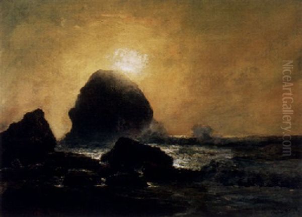 Crashing Waves At Sunset Oil Painting by Charles Dorman Robinson