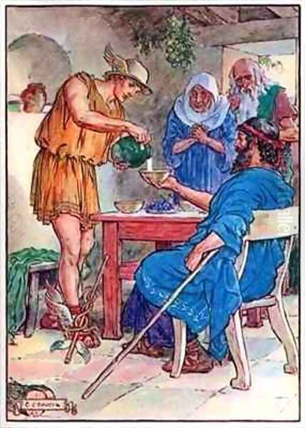 Jupiter and Mercury in the House of Philemon and Baucis Oil Painting - Charles Edmund Brock