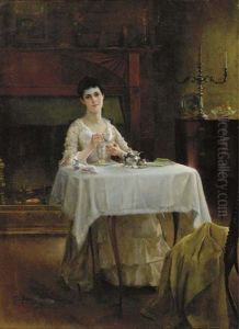 Bring the timeless beauty of Charles Edward Chambers's Afternoon Tea into your home with a handmade oil painting reproduction. Carefully recreated on canvas by skilled artists using traditional techniques, this piece captures the delicate brushwork, subtle light, and vibrant color of the original masterpiece. With museum-level quality and rich texture, it brings elegance and artistic depth to any space. Enjoy free shipping and make this masterpiece a part of your personal collection.