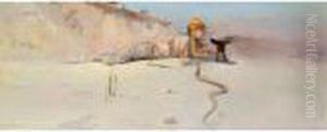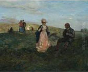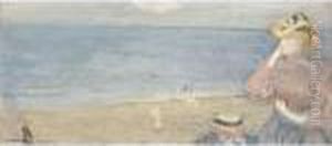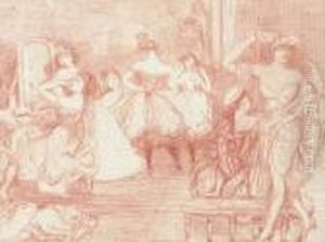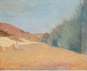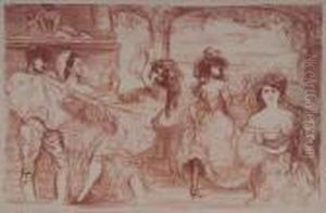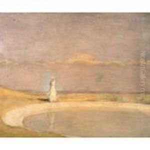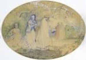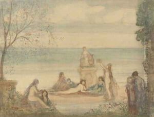 Female Figure seated on the Bank of a Stream: another Figure behind a Tree