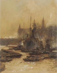 Charles Edward Dixon received his formal art education at the Lambeth School of Art in London. He became a member of the Royal Institute of Painters in Water Colours and the Royal Society of British Artists. His skill in watercolor and oil painting was evident, and he quickly gained recognition for his maritime works.
