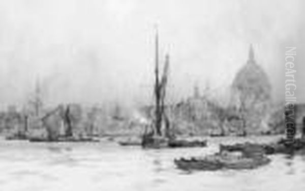 Barges On The Thames Before St. Paul's Cathedral
