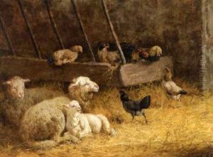 Sheep And Poultry In A Stable