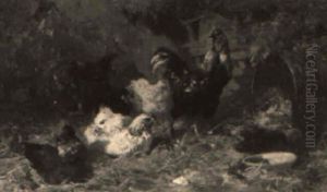 Mother And Child With Poultry In A Courtyard