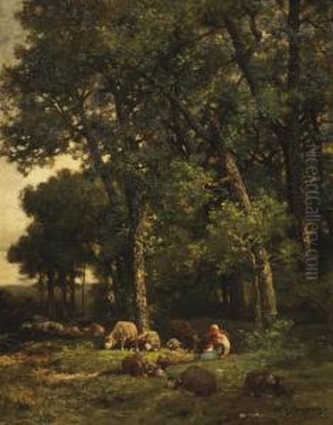 A Shepherdess With Her Flock In The Woods