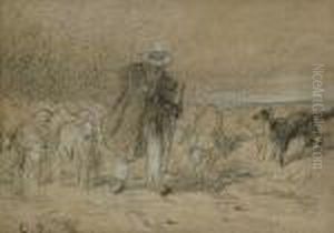 Hirtin Mit Schafherde Am Waldrand. 1872.
