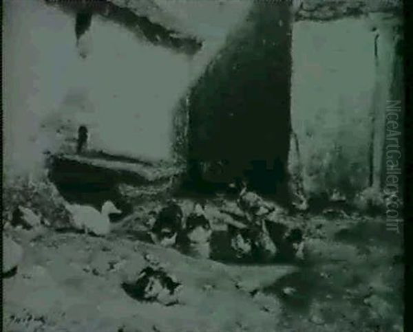 Landlicher Hof Mit Enten Oil Painting by Charles Emile Jacque