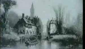 A Riverside Town Scene With Figures