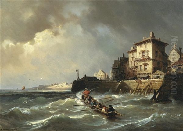 Returning To Harbour Oil Painting by Charles Euphrasie Kuwasseg