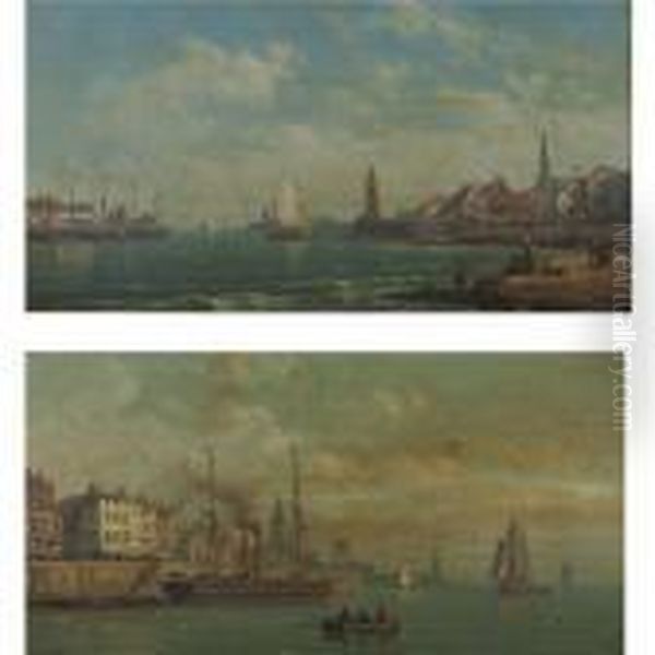 Views Of Harbours With Fisherboats: A Pair Of Paintings