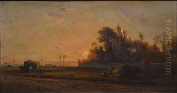 Le Repos Des Faneurs Au Coucher Du Soleil