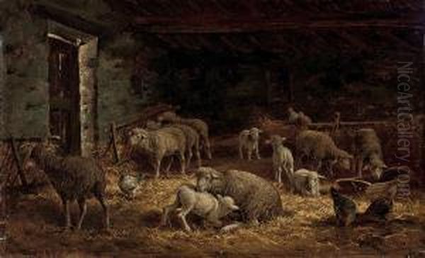 Sheep And Poultry In A Barn