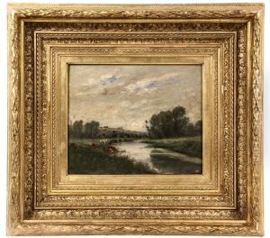 Au Bords De L'oise, Lavandieres Et Vaches