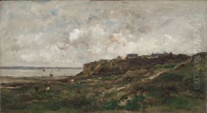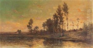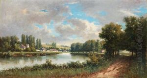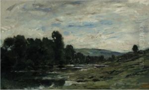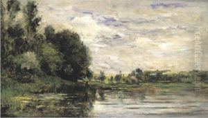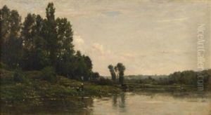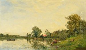 Un Paysage Avec Des Lavandieres Au Bord D'une Riviere