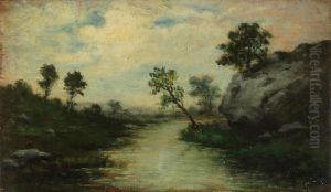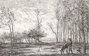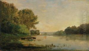 Wooded River Landscape With Punt