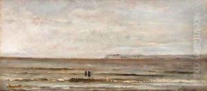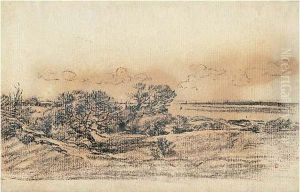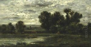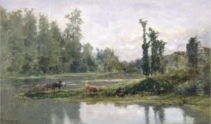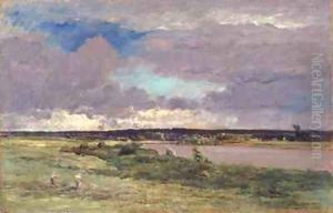 Un Paysage Avec Des Lavandieres Au Bord D'une Riviere