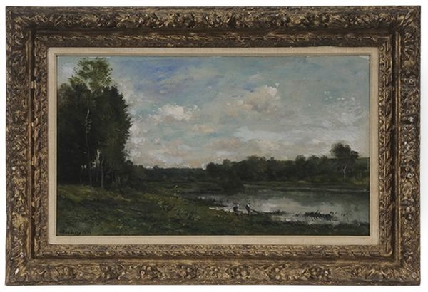 Bords De La Riviere, Pecheur Et Lavandiere
