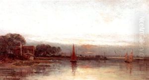 River Scene At Sunset