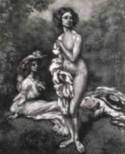 Jeune Femme Au Chapeau Bleu, Un Sein Decouvert