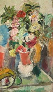 < Vase De Fleurs Et Coupe De Fruits >.