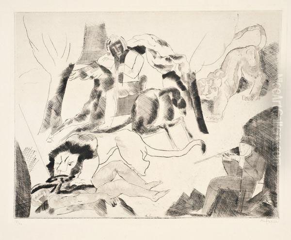 Chasseurs De Lions Oil Painting by Charles Georges Dufresne