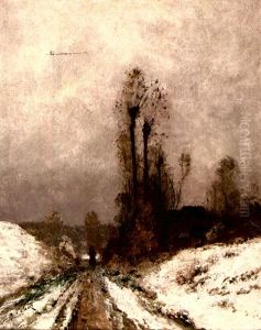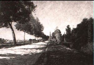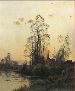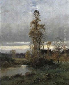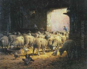 Abendlandschaft Mit Schafherde, Hirte Und Hund