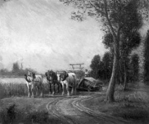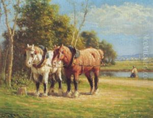 Gespann Mit Zwei Zugpferden Am Flussufer