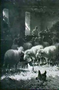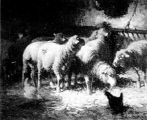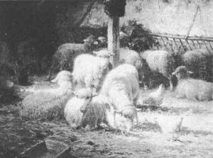 Berger Et Son Troupeau De Moutons A L'abreuvoir