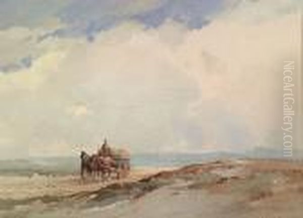 "the Top Of The Hill", Wagon And Horses In A Landscape