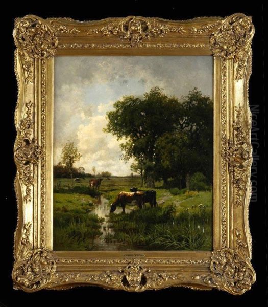 Bring the timeless beauty of Charles Harry Eaton's Meadow Stream With Cows into your home with a handmade oil painting reproduction. Carefully recreated on canvas by skilled artists using traditional techniques, this piece captures the delicate brushwork, subtle light, and vibrant color of the original masterpiece. With museum-level quality and rich texture, it brings elegance and artistic depth to any space. Enjoy free shipping and make this masterpiece a part of your personal collection.