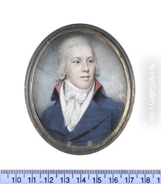 A Gentleman, Wearing Double-breasted Blue Coat With Red Collar, White Waistcoat, Chemise, Stock And Cravat, Powdered Hair