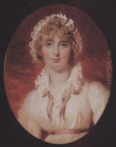 A Lady With Light Brown Hair Wearing A White Turban, Gown And Fichu