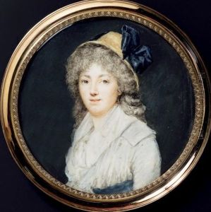 Portrait De Jeune Fille En Allegorie Du Feu, Avec Flambeau Et Carquois, Les Cheveux Au Naturel Avec Un Voile Ourle De Flammes Et Entoure De Fumee, Devant Un Rosier