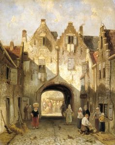 Am Stadtbach, alte Hauser und Brucke in einer hollandischen Stadt
