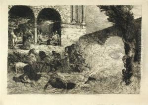 A Winter Landscape With Figures On The Ice