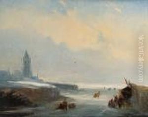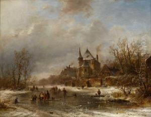 A Winter Landscape With Skaters On A Frozen River