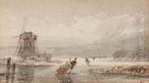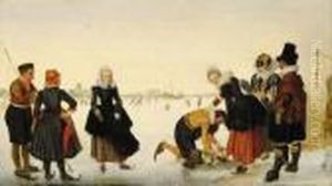 Skaters On A Frozen River With Figures Near A 'koek En Zopie'