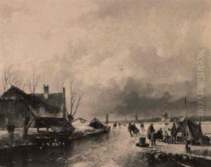 Bring the timeless beauty of Charles Henri Leickert's Skaters On A Frozen River With Figures Near A 'koek En Zopie' into your home with a handmade oil painting reproduction. Carefully recreated on canvas by skilled artists using traditional techniques, this piece captures the delicate brushwork, subtle light, and vibrant color of the original masterpiece. With museum-level quality and rich texture, it brings elegance and artistic depth to any space. Enjoy free shipping and make this masterpiece a part of your personal collection.