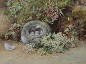 Stilllifes Of A Birds Nest On A Mossy Bank