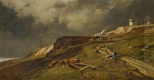 Bauern Vor Der Windmuhle Bei Aufkommendem Gewitter