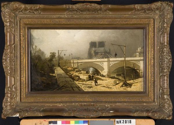 Pont de l'Archeveche (?) Parijs Oil Painting by Charles Hoguet