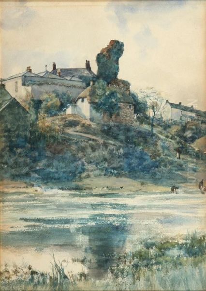 Figures By The River With Cottages And Church