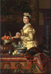 Portrait Of A Gentleman In A Dark Blue Coat And A Burgundy Gown, At A Table