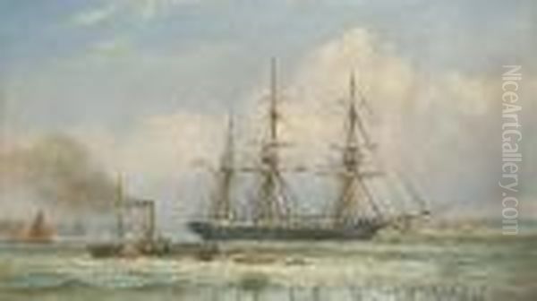 A Three-master And A Paddle Steamer In An Estuary