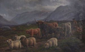 Highland Cattle And Sheep In A Landscape