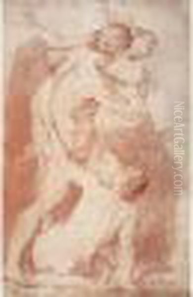 Jeune Homme Enlevant Une Femme, Une Autre Femme A Leurs Pieds