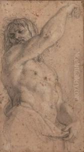 A Seated Saint Looking Up, With Subsidiary Studies Of Hishands