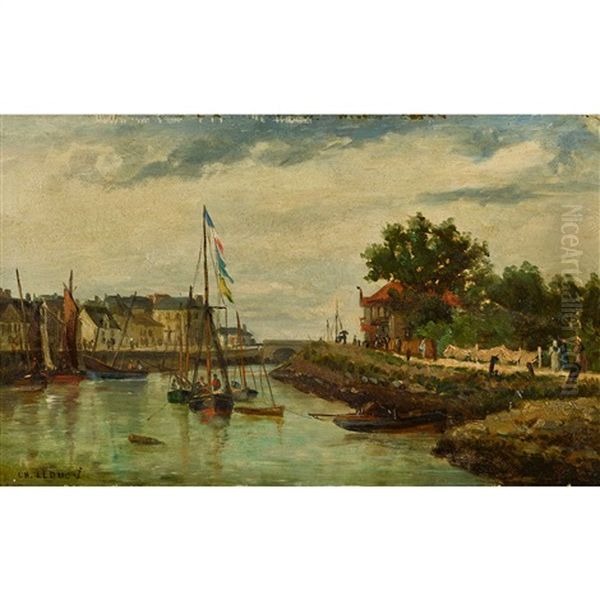Kanalpartie Mit Booten Oil Painting by Charles Leduc