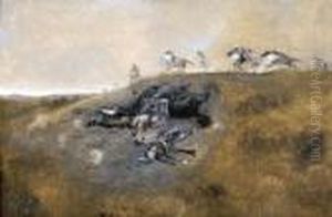 Indians Attacking Pale Face Wagon (study)